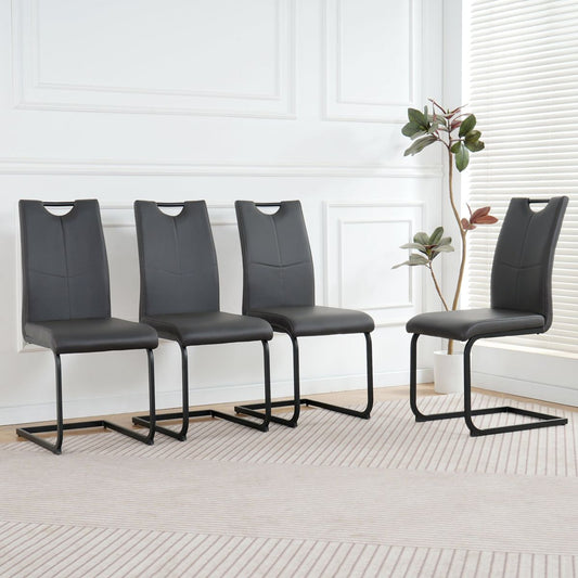 Modern Charcoal PU dining chair living room chair upholstered chair, black metal chair leg design, kitchen, living room, bedroom, dining room side chair (Set of 4)