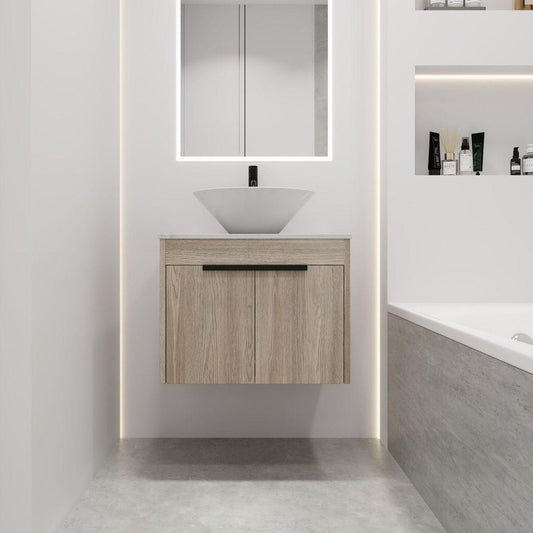 24" Modern Design Float Bathroom Vanity With Ceramic Basin Set, Wall Mounted White Oak Vanity With Soft Close Door, KD-PackingD-Packing Pieces