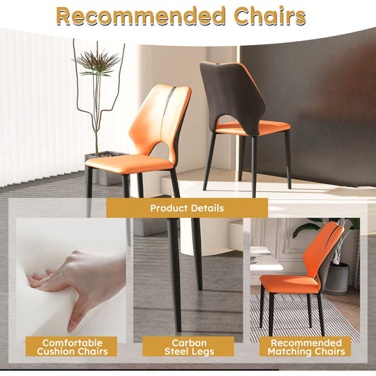 Dining Chairs Set of 2, Modern Design Home Chairs, PU Leather Metal Dining Chairs for Kitchen Dining Room-Orange and Brown