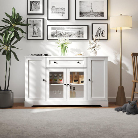 Buffet Cabinet with Storage, Modern Sideboard Buffet with Doors, Wood Coffee Bar Kitchen Storage Cabinet with Drawer and Adjustable Shelf for Kitchen, Dining Room, Living Room, White