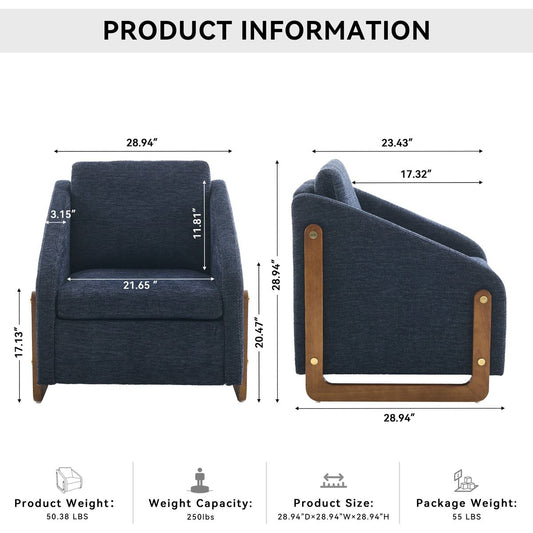 057-Set of 1 Chenille Fabric Modern Upholstered Armchair with Wooden Side Frame , Accent Leisure Chair with Cushioned Seat and Backrest for Living Room, Bedroom,Blue
