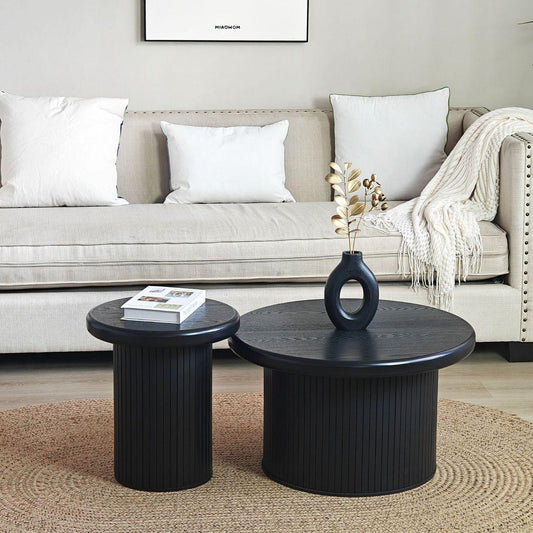 Modern Round Coffee Table Set – Dual Table Combination with Unique Fluted Table Leg Design, Stylish Living Room Furniture