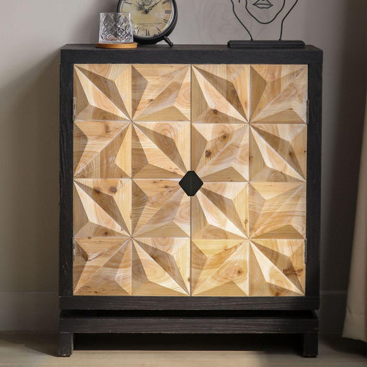 3D Geometric Carved Double-Door Cabinet – Manufactured Wood Storage Cabinet, Modern Decorative Furniture