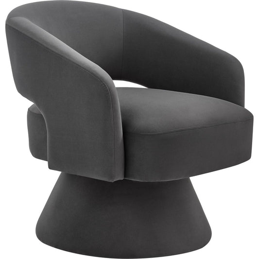 Modern Swivel Barrel Chair, Upholstered Velvet Round Accent Chairs,360 Degree Comfy Swivel Chair with Open Backrest, Single Chair Armchair for Living Room Bedroom, Homerest, Dark Gray