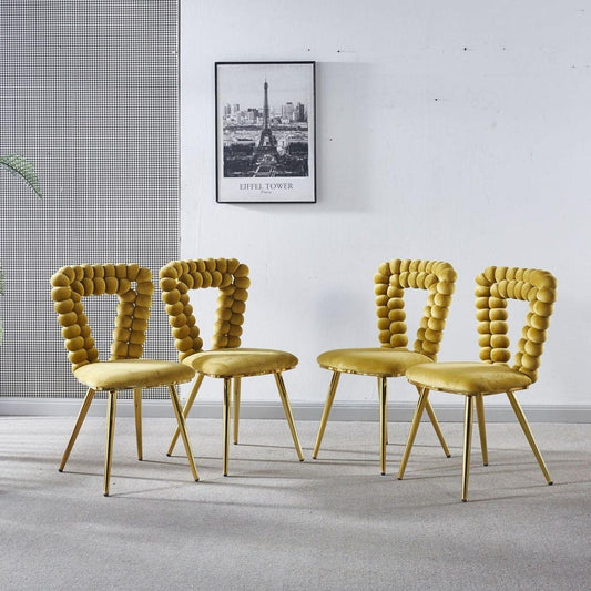 yellow and gold Modern chair(set of 4 ) with iron tube legs, soft cushions and comfortable backrest, suitable for dining room, living room, cafe,hairball back