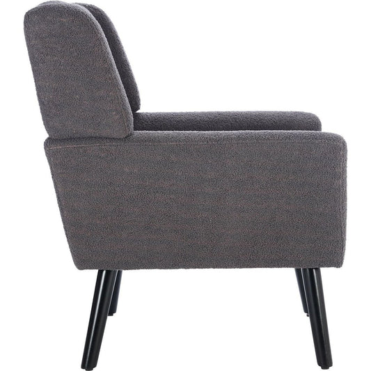 Modern Soft Teddy Material Ergonomics Accent Chair Living Room Chair Bedroom Chair Home Chair With Black Legs For Indoor Home-Grey Teddy Fabric