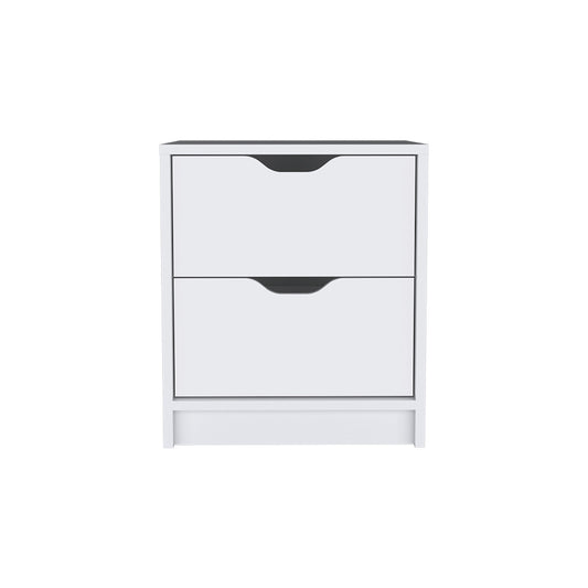 Nightstand Olienza, Two Drawers, One Shelf, White Finish