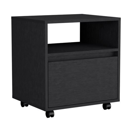 Omaha Nightstand, Single Door Cabinet, Metal Handle, One Shelf, Superior Top, Black