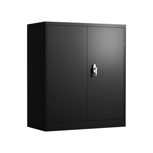 Metal Storage Cabinet with 2 Doors and 2 Shelves, Lockable Steel Storage Cabinet for Office, Garage, Warehouse