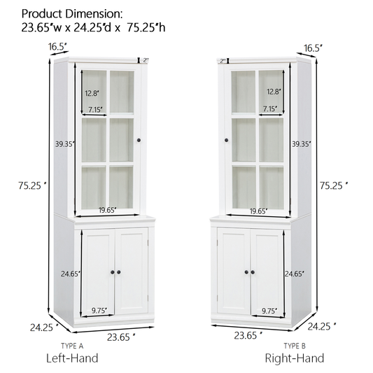 Retro Style Hutch Cabinet with Single Glass Door, China Cabinet for Home, Office, or Studio - White, 75.25'' Tall