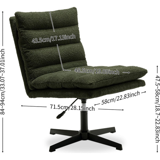 Green Teddy Fabric 360° Swivel Accent Chair, Cross Legged Office Chair, Adjustable Armless Wide Home Lounge Chair for Bedroom, Living Room-1PC