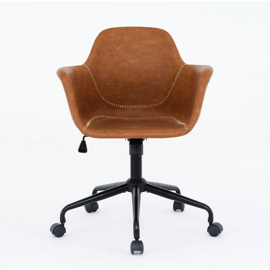 Mid-Century Modern Office Chair,Rolling Swivel Height Adjustable Ergonomic Chair with Frame/Arms, Back Support Home Desk Chair for Living Room,Studying (Brown)