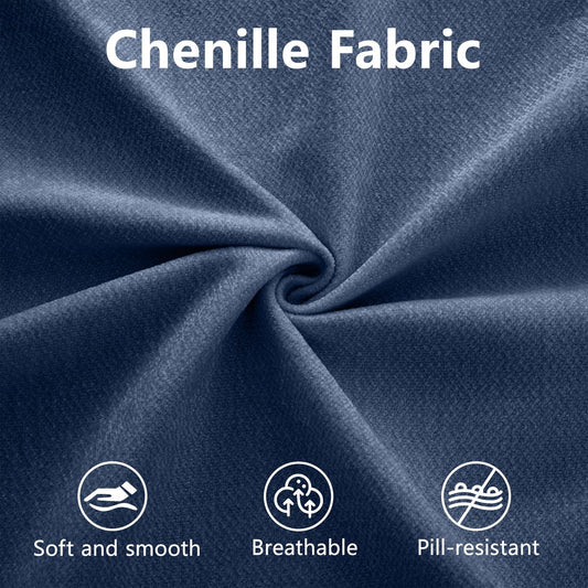 Elegant Blue Chenille Sofa with Storage Seat and Ottoman, L-Shaped 3-Seater Cylindrical Backrest and Armrests, Contemporary 3-Seater Fabric Couch with Hidden Storage Compartment