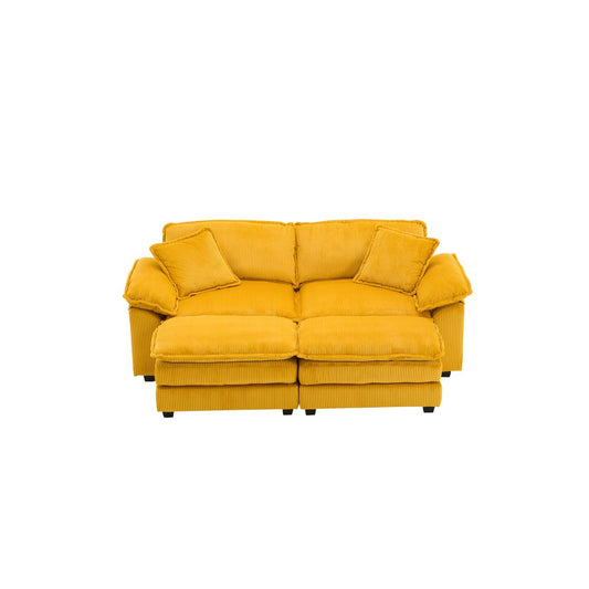 Corduroy 2-seats sofa With 2 back pillows,2 toss pillows and two ottoman,Comfy Sofa- Deep Seat Couch for Living Room,Yellow