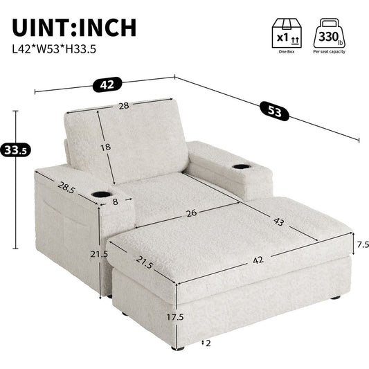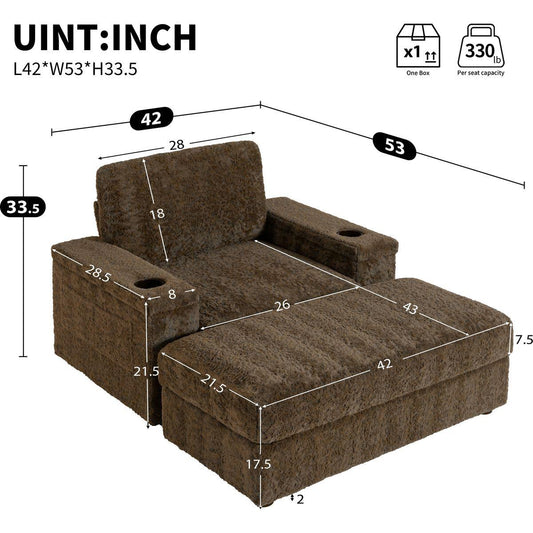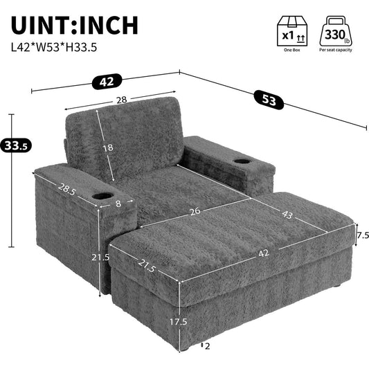 [Video]42' Oversized Chaise Lounge Indoor,Faux Rabbit Fur Sofa Bed with Storage Ottoman and Armrests,Cup Holders,Upholstered Sleeper Chair,Reading Couch with Deep Seat for Living Room,Bedroom,4 Colors