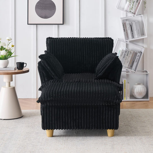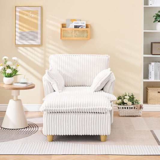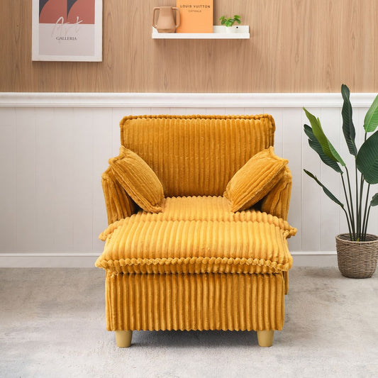 This single-seat corduroy sofa comes with an ottoman and throw pillows. It's perfect for sitting or lying down comfortably in the living room, on the balcony, or in the study.