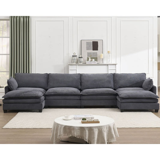 U_Style U-shaped Freely Transformable Modular Corner Sofa with Two Ottomans, Suitable for Living Rooms, Studies, Home Theaters, and More.