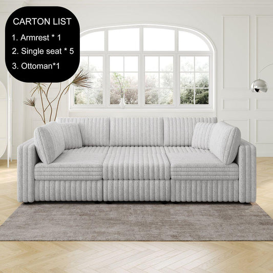 106.3' Soft U-shaped 6-Person Sofa. Matches 30.7' Ottoman with Hydraulic Lift. Comfortable & Stylish. For Bedroom & Living Room. Light Gray. Modern Furniture. Modular Design.