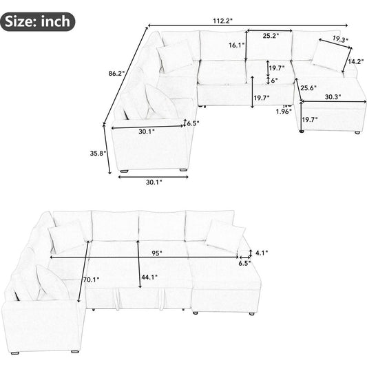 112.2" Sectional Sofa Pull-out Sofa Bed Sleeper with a Storage Ottoman,Three Pillows and Charging Devices for Living Room, Cream