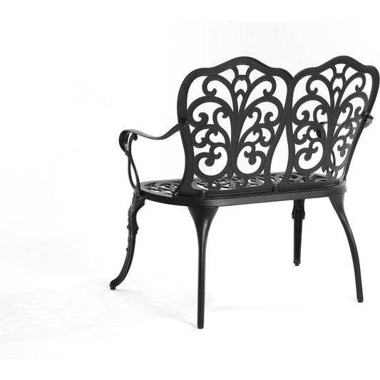 Patio Garden Bench Metal Park Bench Cast Aluminum Outdoor Furniture with Floral Rose for Patio,Park,Lawn,Yard Black
