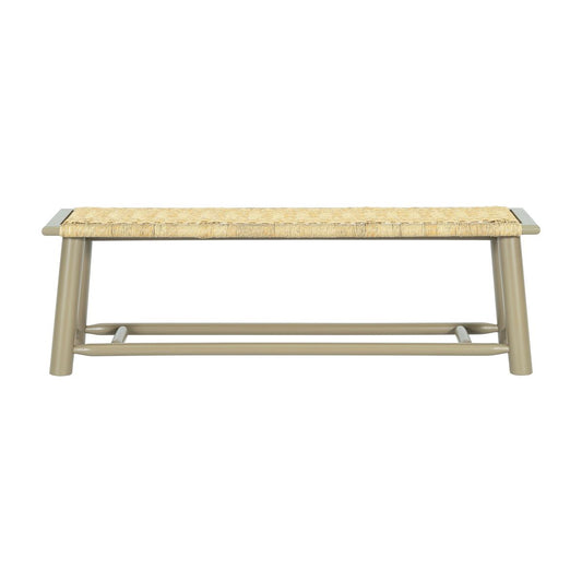 Farmhouse Modern Solid Wood Rattan Bench - 59 Inch Indoor & Covered Outdoor Bench Champagne Finish Multi-Functional Design