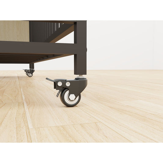 Large pet cage with storage rack, drawers with stainless steel food and water basins, double-layer storage rack made of iron frame and MDF material, sturdy, exquisite, and practical (black+beige)