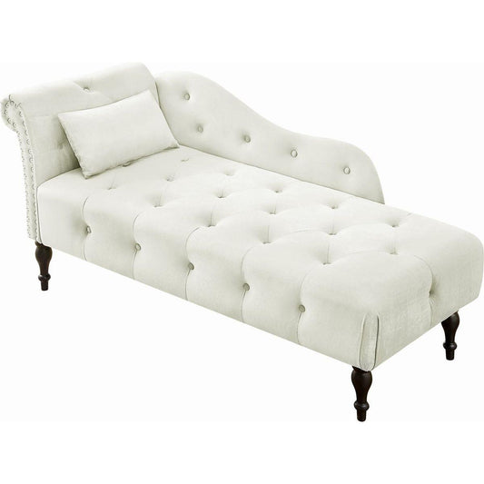 60.6" Velvet Chaise Lounge Buttons Tufted Nailhead Trimmed Solid Wood Legs with 1 Pillow,White (Left Arm Design as Shown in the Picture)
