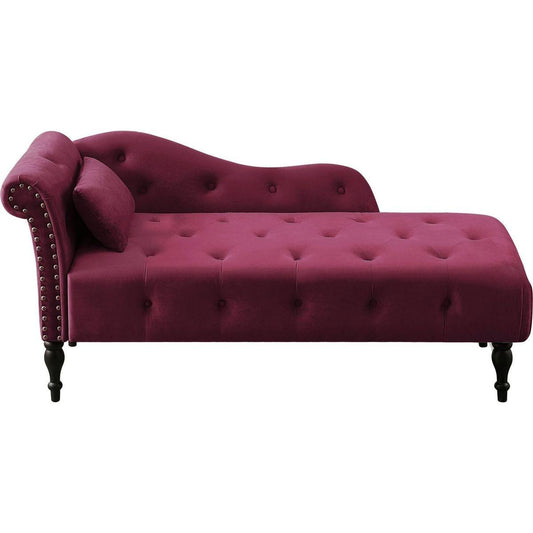 60.6" Velvet Chaise Lounge Buttons Tufted Nailhead Trimmed Solid Wood Legs with 1 Pillow,Burgundy (Left Arm Design as Shown in the Picture)
