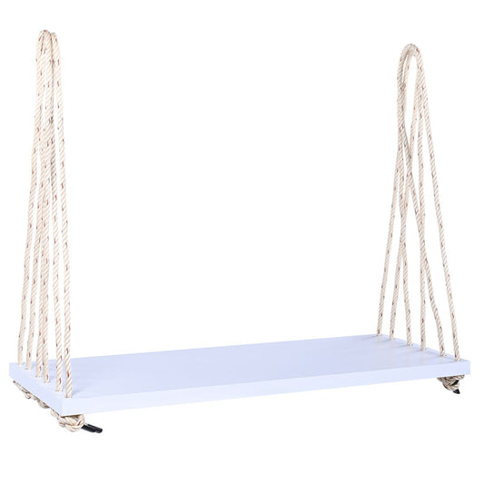 TOPMAX Patio Wooden Swing Chair, Hanging Porch Swing Bench with Cushion&Pillows, 10.8Ft Hemp Ropes for Garden,Backyard, Lawn,White