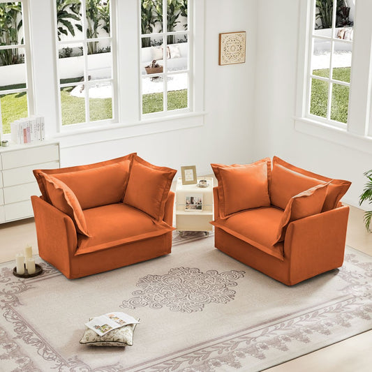 Upholstered Slipcovered Armchair with Ottoman, Deep Seat Armchair W/ Wide Ottoman for Living Room, Armchair Sets with Large Soft Pillows(Set of 2),Chenille Fabric,Orange