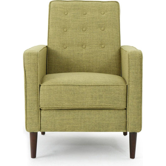 Mid Century Modern Fabric Channel Stitch Wood Pushback Recliner