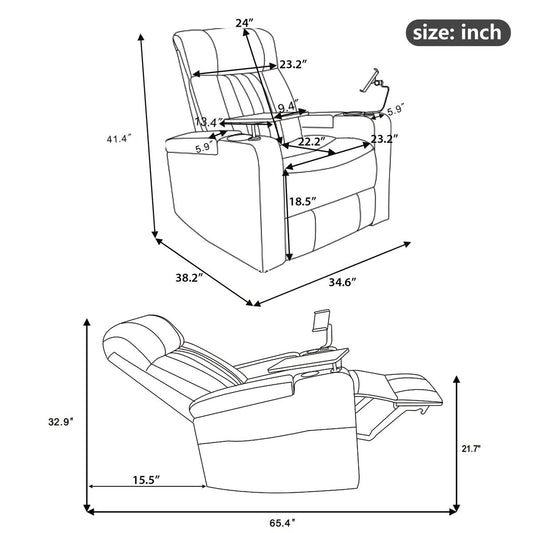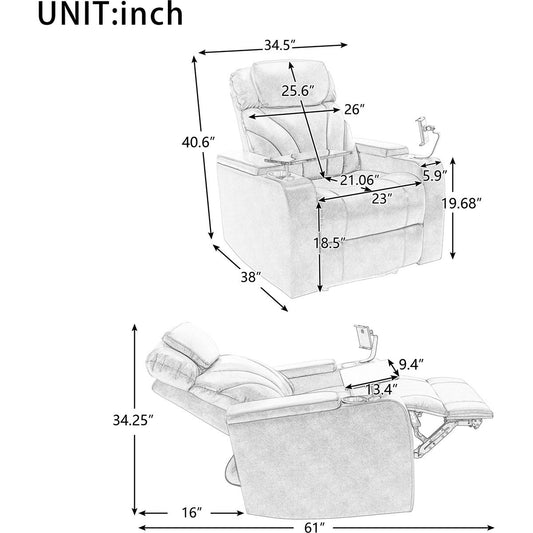 Premium Power Recliner with Storage Arms, Cupholders, Swivel Tray Table and Cell Phone Stand, Brown PU Leather, 35'' x 29.9'' x 41.2''