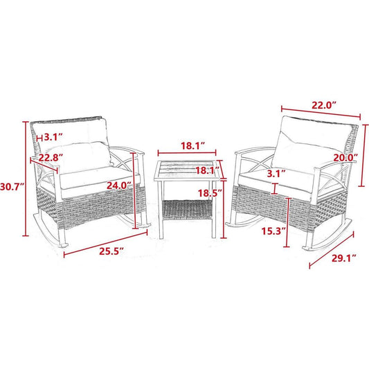 3pcs rocking rattan set wholesale leisure chair outdoor rattan rocking chair set grey
