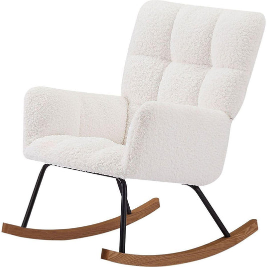 Teddy Upholstered Nursery Rocking Chair for Living Room Bedroom(WHITE Teddy)