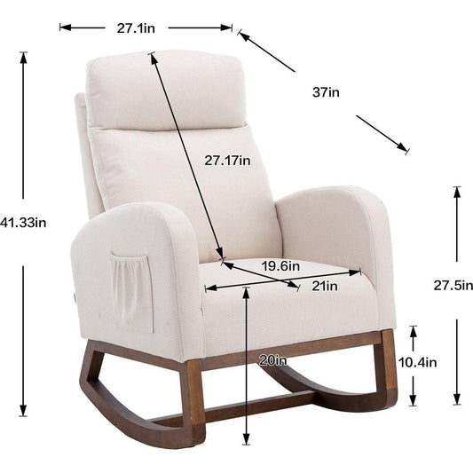 Comfy Upholstered Lounge Chair Rocking Chair with High Backrest, for Nursing Baby, Reading, Napping OFF WHITE