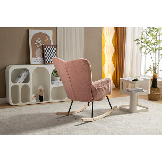 053-Teddy Fabric Rocking Chair With Adjustable Footrest,Pink