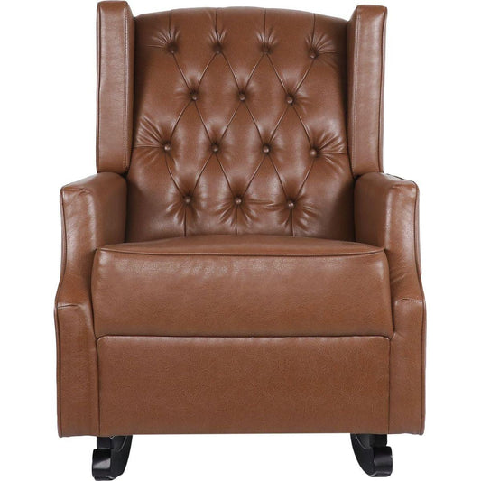 Modern Rocking Chair Recliner, Comfy Rocker Nursery Chair with Footrest, Accent Reading Chair, Upholstered Lounge Chair for Relaxing, Resting,Soft Padded Rocker for Indoor Living Room Bedroom,Orange