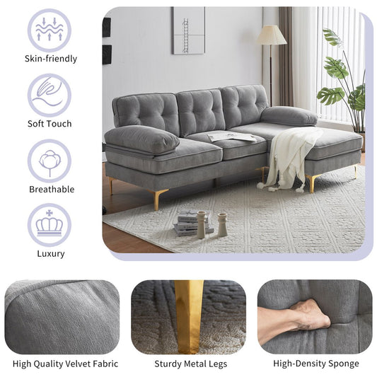 82.6' Modern Sectional Sofas Couches Velvet L Shaped Couches for Living Room, Bedroom(Old SKU:SG000980AAE), Light Grey