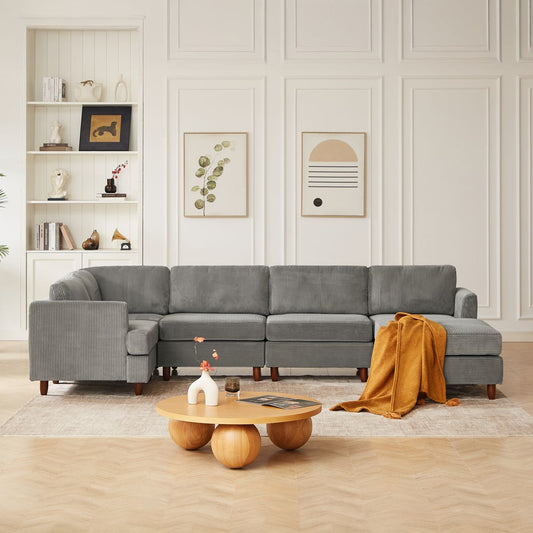 Modern Modular Sectional couch,6 Seaters Sleeper Sofa Upholstered Corduroy Free Combination Sofa(Grey)
