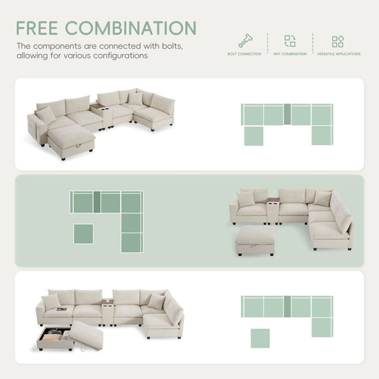 [VIDEO]140'' Oversized Modular Sectional Sofa with Movable Storage Ottoman and Console,Removable Storage Pockets,Cup Holder,Wide Seat,USB Charger,6 Seat U Shaped Corduroy Couch for Living Room,2 Color