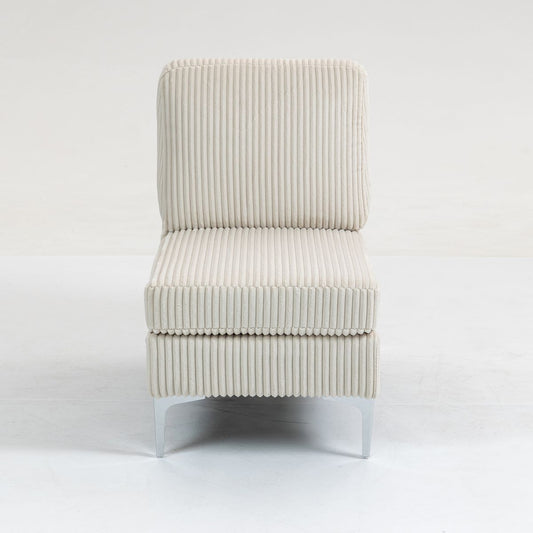 Modular Sectional Sofa Armless Seat Module, Corduroy Sectional Couch, Single Couch Modular Armless Accent Chair with Back Cushion, Beige