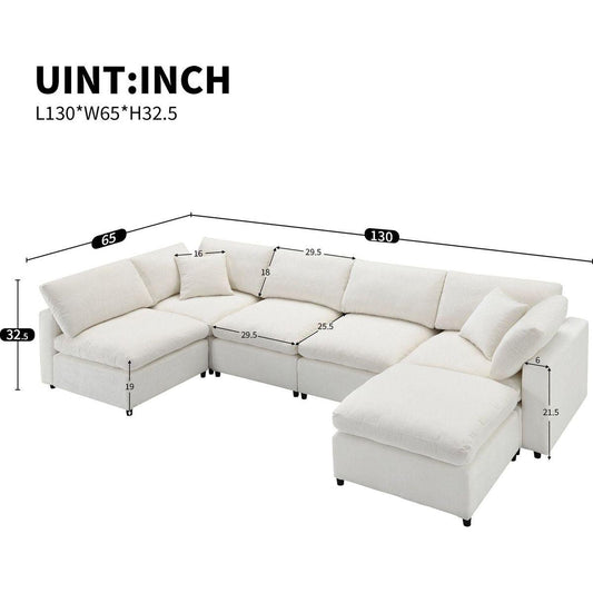 130x65" Modern Modular Cloud Sofa Bed, 6 Seat Chenille Sectional Couch Set with Ottoman,Free Combination,Convertible U Shaped Sleeper Sofa for Living Room, Apartment, 3 Colors