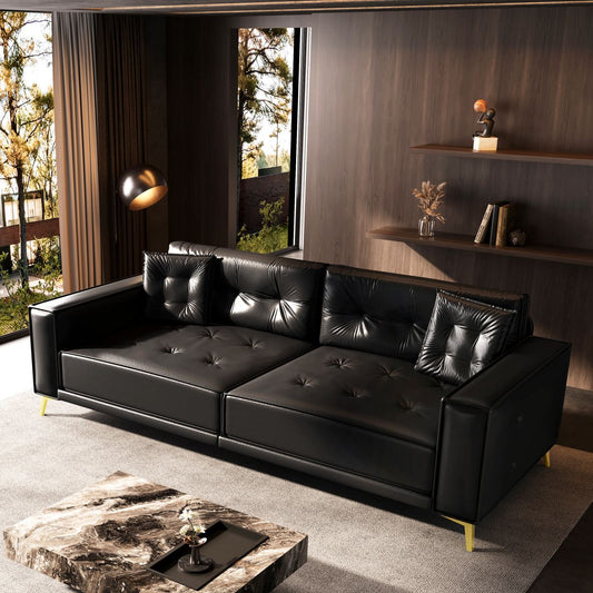 92.1'King Size Pull Out Sofa Bed,3-in-1 Faux Leather Convertible Sleeper Sofa with Ultra Wide Armrests,Tufted Modern Sofa,4-Seater Couch with 2 Pillows for Living Room,Apartment,Office,Black