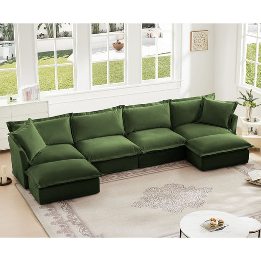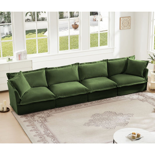 Slipcovered Long Sofa, 4 Seater Sofa with Removable Cover, Extra Deep Couch for Living Room, ,Chenille Fabric Cloud Like Comfy Sofa Couch, Green Chenille Fabric