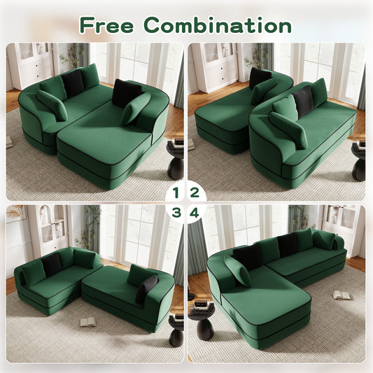 4-Seat Boneless Sofa, High-Quality Teddy Fabric,No assembly required Curved armrest,Anti-slip Design,32D High Density Sponge Full Compression Vacuum Packag,For Studies Iiving Rooms,Green
