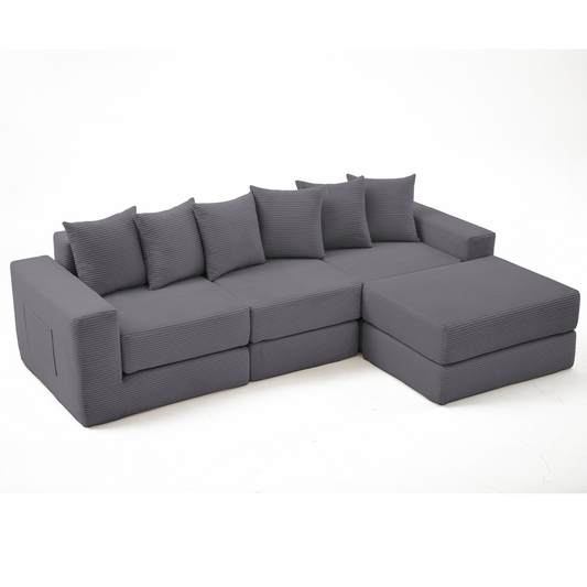 [NEW ARRIVED] [VIDEO PROVIDED]10-in-1 Convertible Sofa Sectional ,Corner Couch , Convertible Floor Sleeper Sofa,Corduroy,Side Pocket,No Assembly,DIY,L Shaped Modular Sofa,6 Pillows,Dark Gray