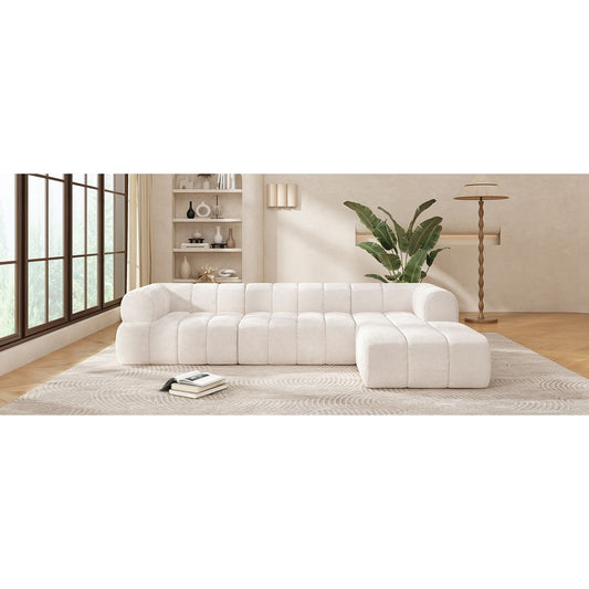 Modular Beige-Corduroy Fabric Sectional Sofa with L-Shape Chaise, Cloud Sectional Modern Sleeper Couch with Deep Seat,Sponge Compression Sofas No Assembly Required