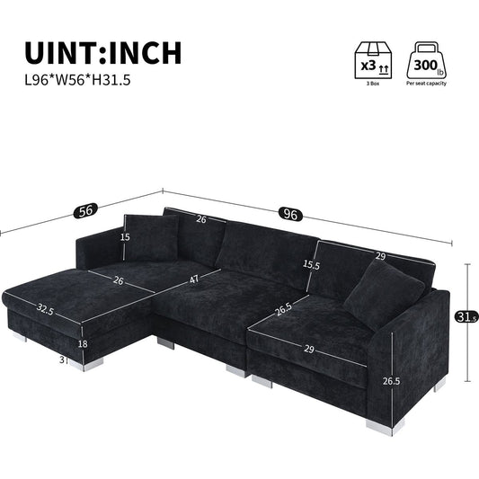 96*56' Modern Cloud Sectional Sofa,L-shaped Luxury Couch Set with 2 Free pillows,4-seat Chenille Indoor Furniture with Oversized Chaise for Living Room,Apartment,Office,3 Colors