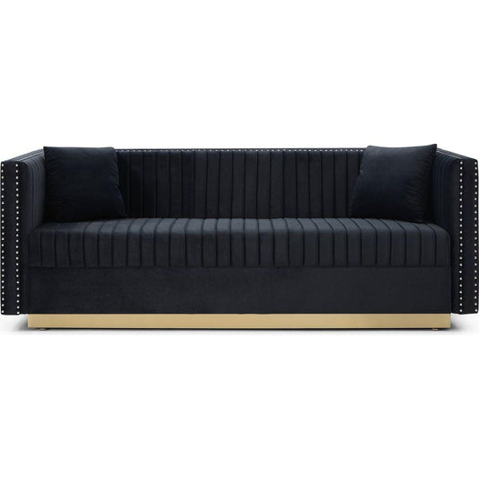 Contemporary Vertical Channel Tufted Velvet Sofa Modern Upholstered Couch for Living Room Apartment with 2 pillows,Black