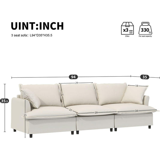 [New+Video] 94*35' 3 Seat Sofa Module for Modular Sectional Sofa,Wide Seat,Chenille Cloud Couch with Throw Pillows,Upholstered Indoor Furniture for Living Room,Bedroom,Apartment,2 Colors